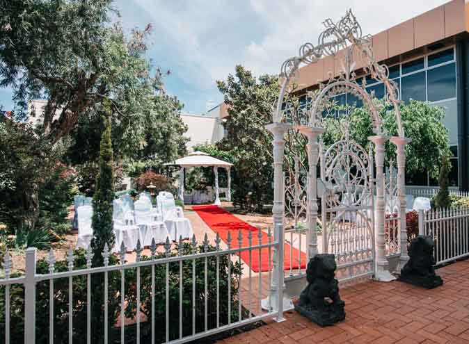 The Tranquil Garden is an established garden in the heart of the complex, is the perfect backdrop for wedding ceremonies, outdoor receptions, cocktail functions, parties and is licensed for 100 guests.