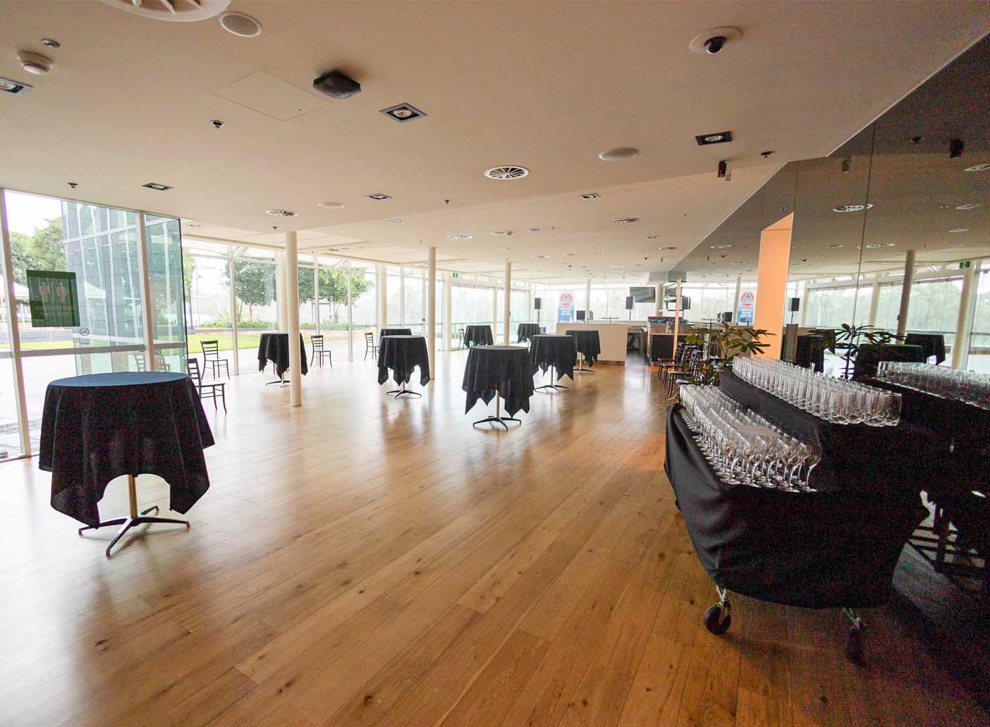 Features panoramic views of the Adelaide Riverbank, an in-built private bar, the option to open out onto the Regattas Lawns for indoor or outdoor events, and a floor space of 369 square metres.