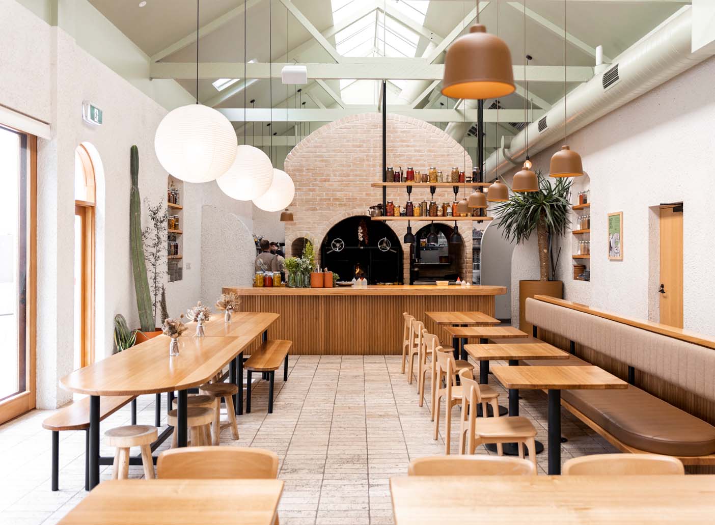 Sneak a peak of their chef cooking over their wood-fired grill from behind the pass, order from their beautifully designed central bar and enjoy further cosy moments in their space.