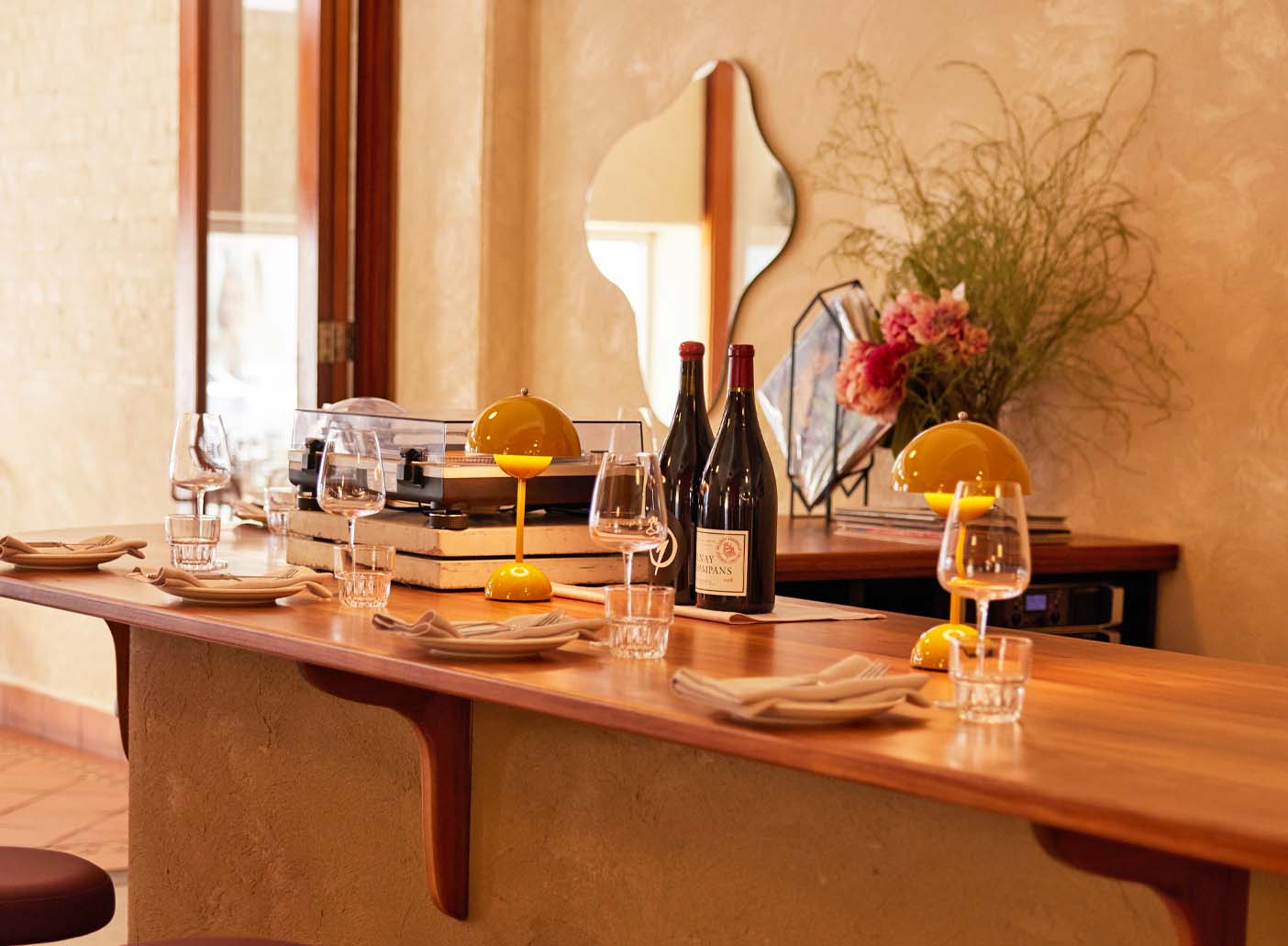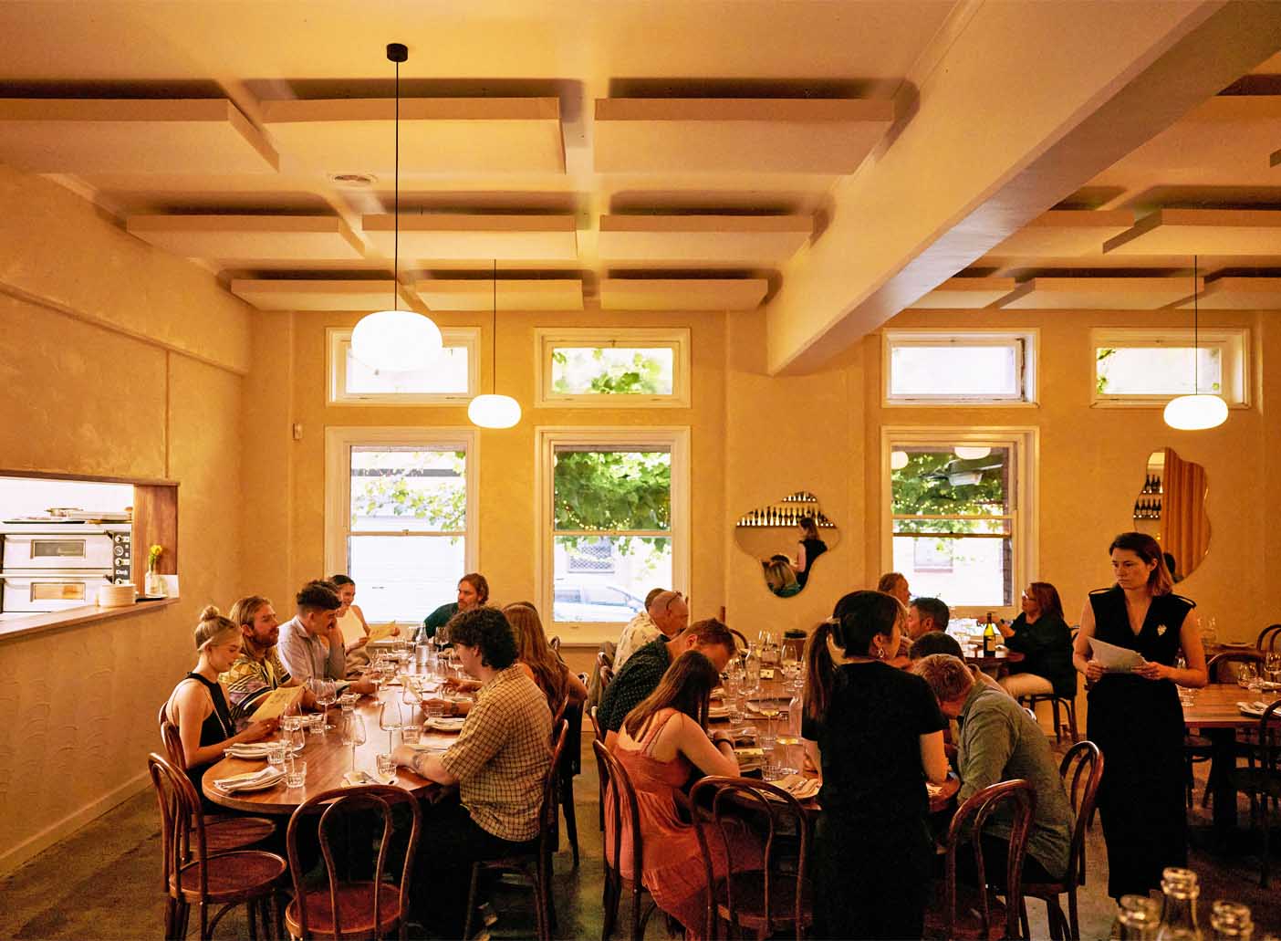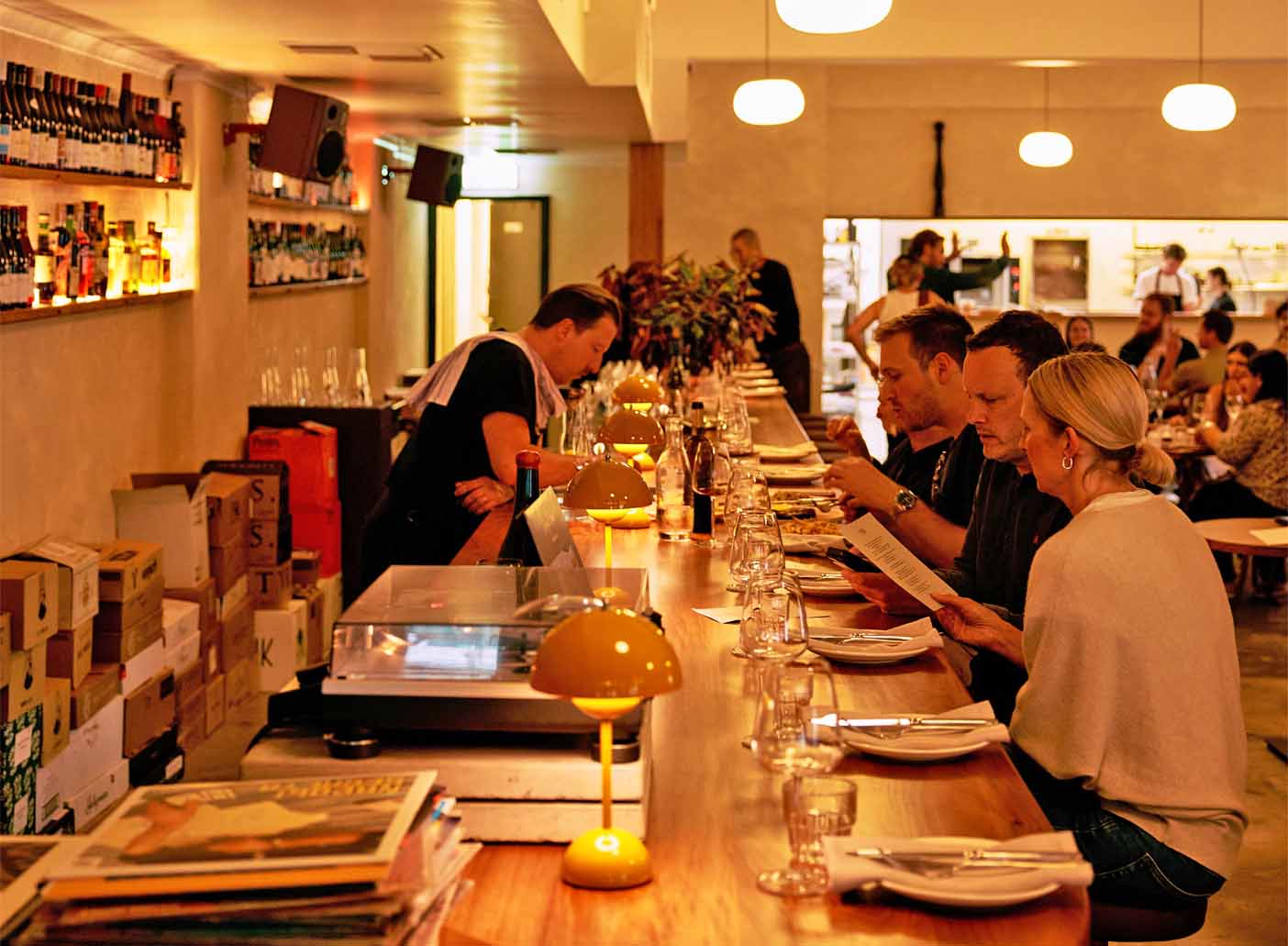 A smaller area, suitable for a single long table of up to 18 guests with the beautiful Tasmanian Blackwood bar on one side and a clear view of their record player.