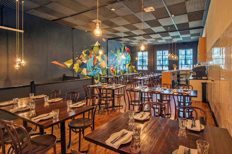 The First Floor space is available to book privately for all special occasions and events, and is perfect for both stand-up cocktail style functions as well as large sit down dining events. Open for lunch and dinner from Tuesday to Friday, and dinner on Saturdays. There is a 75 guest capacity for a sit down dinner and 100 guests for a stand up event.