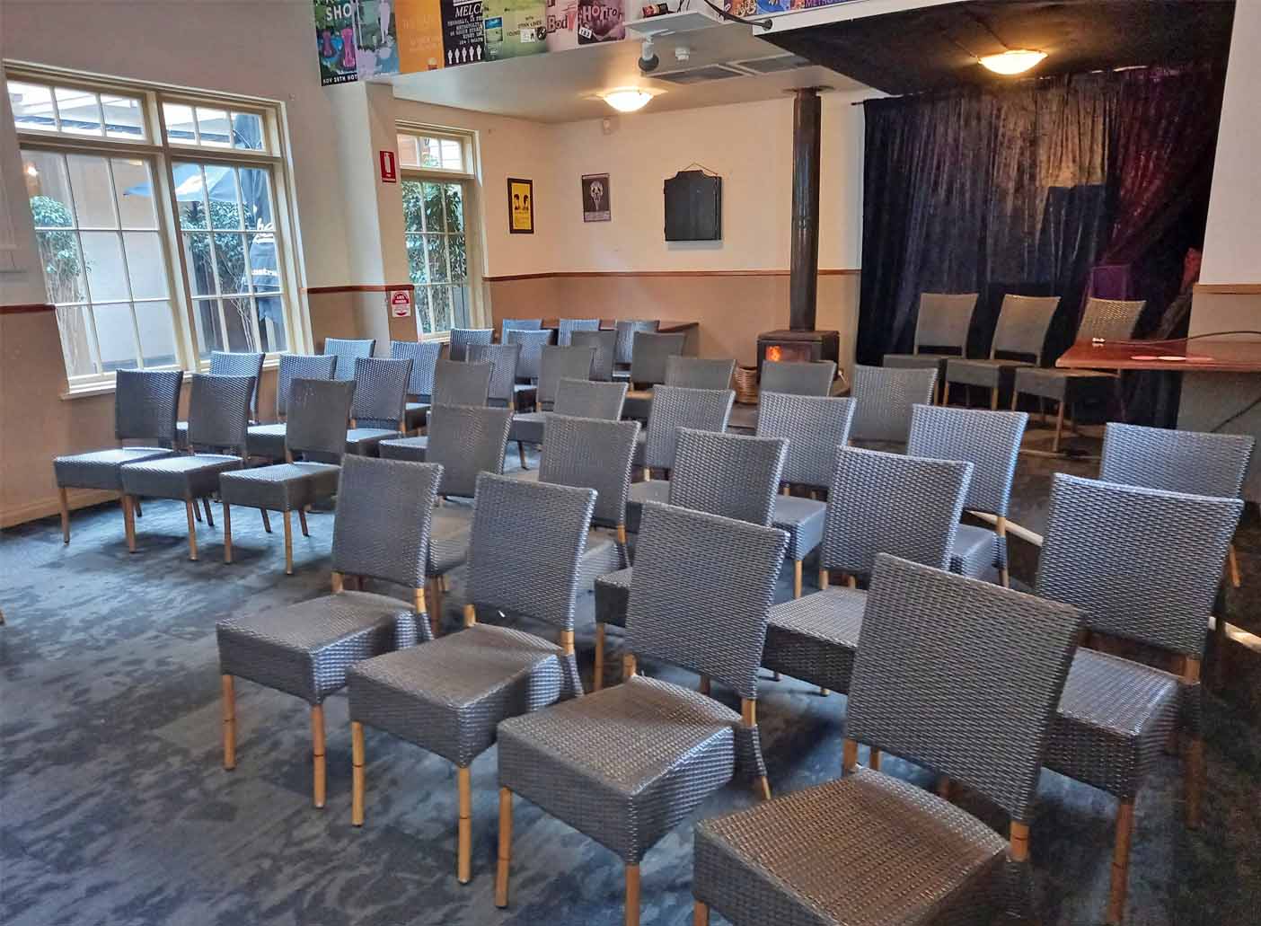 The Theatre Bar, located on Pitt Street next to Her Majesty's Theatre, offers a charming setting with its authentic pub ambiance and fully stocked bar, making it an excellent choice for functions.