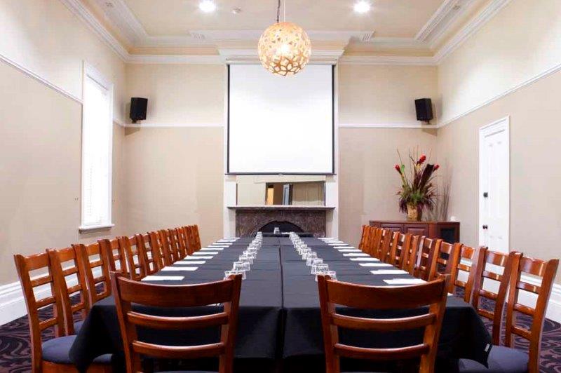 The recently refurbished boardroom is the perfect place for your next meeting. The heritage style architectural features (high ceilings, huge sash windows and fire place), are elegantly set-off against fresh light coloured walls, white venetian blinds and modern wooden light features.