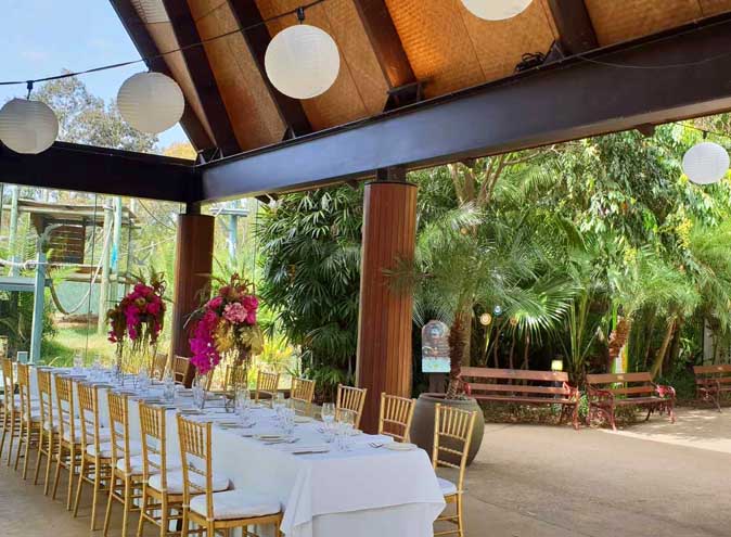 This venue is ideal for cocktail parties of up to 100 guests and for intimate sit-down dinners of up to 40 guests. With stunning views of the Tiger and Orangutan enclosures and surrounded by an Asian Rainforest this venue is truly unique.  To make the event even more special Tiger feeding can be included in the nights events, along with talks from the Zoo Keepers.