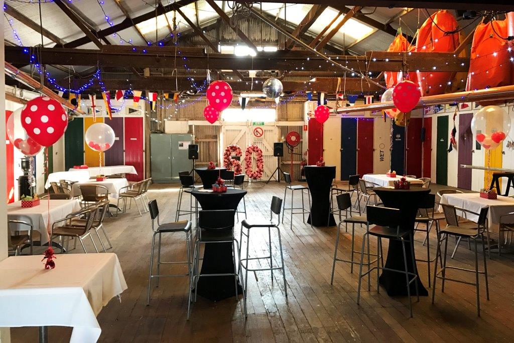 The Dinghy Shed exudes character and heritage charm.  The original boat shed, with a backdrop of colourful lockers and boardwalk timbers, is a perfect space for a unique event.