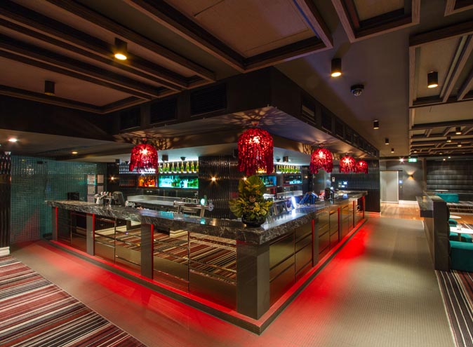 A European-style Americano bar with an intimate edge. Candlelight flickers across marble surfaces and leather banquettes, setting the scene for a romantic night out. It’s all about cocktails here ...