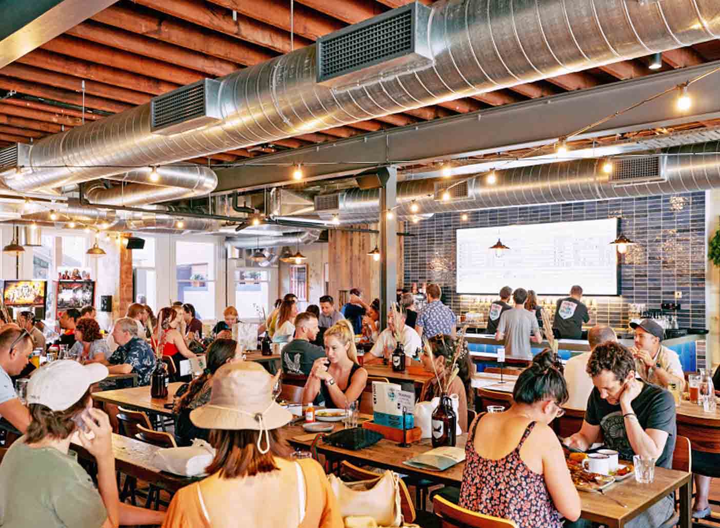Beer aside, the kitchen crew dish up a huge range of farm-to-table feeds, including a 50% plant based menu for the vegetarian and vegans among us. Prepare yourself for loaded burgers, pizzas fresh from the oven, stacked tacos, wings and more.