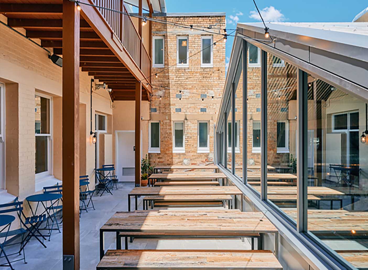 The Terrace is an intimate, covered outdoor space with a unique view of the venue.