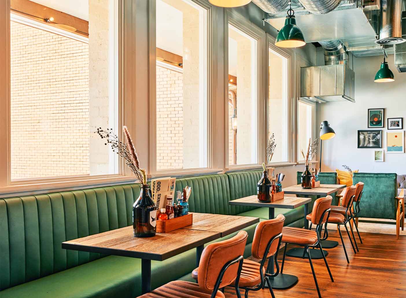 It has a variety of booths, high tables, and a super cozy lounge! The space includes a large bar, with bathrooms on the same level as well as a pool table and three tv's for you to cast to or live sports!