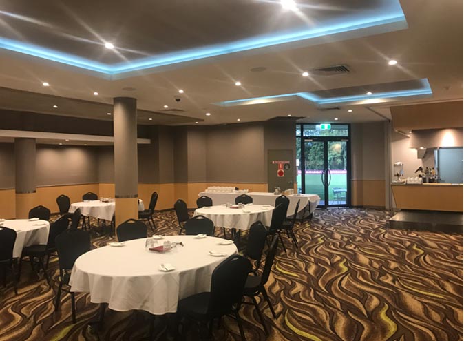 They offer great day lighting with multiple glass windows which offer views of the NRL Women's team training grounds. They can also be OPENED INTO ONE MASSIVE ROOM, which can fit 150 banquet style or 200 cocktail party style.