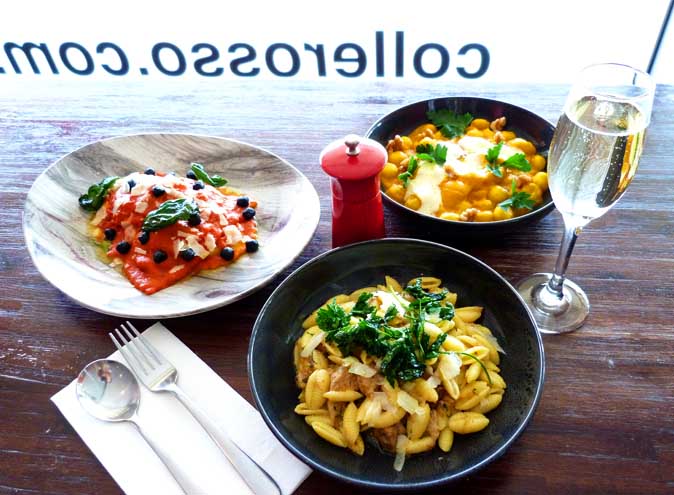 The menu consists of authentic and regional Italian meals as well as dishes that put a twist to traditional recipes, and includes thin and crispy base Pizzas, Homemade Pastas, Entrees, Main Dishes and delicious Desserts! Colle Rosso caters for Celiac, Dairy Free, Vegetarian and Vegan people, and also for Kids with a dedicated Menu.