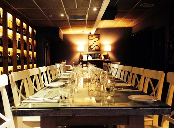 As you descend you feel yourself leaving the modern world behind and entering a simpler, more elegant era. The atmosphere is that of the best kind of private club, with vintage chesterfields, port barrels and brass deer twinkling in the candlelight. A gorgeous wine library filled with cellared treasures lines one side of the bar behind wooden communal tables where you can relax and plan what to drink next.
