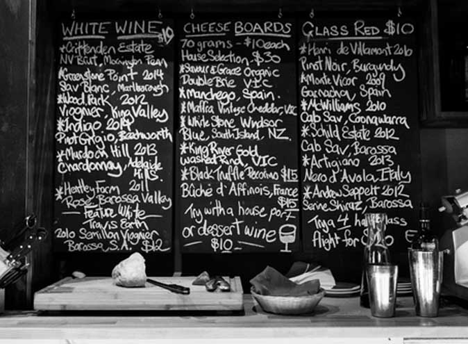 Artisan cheese and charcuterie boards are lovingly put together by the team to accompany your bottle of choice. While they do not have a kitchen, pizzas can be ordered and delivered from the Italian restaurant upstairs. Full catering can also be organised for private functions.