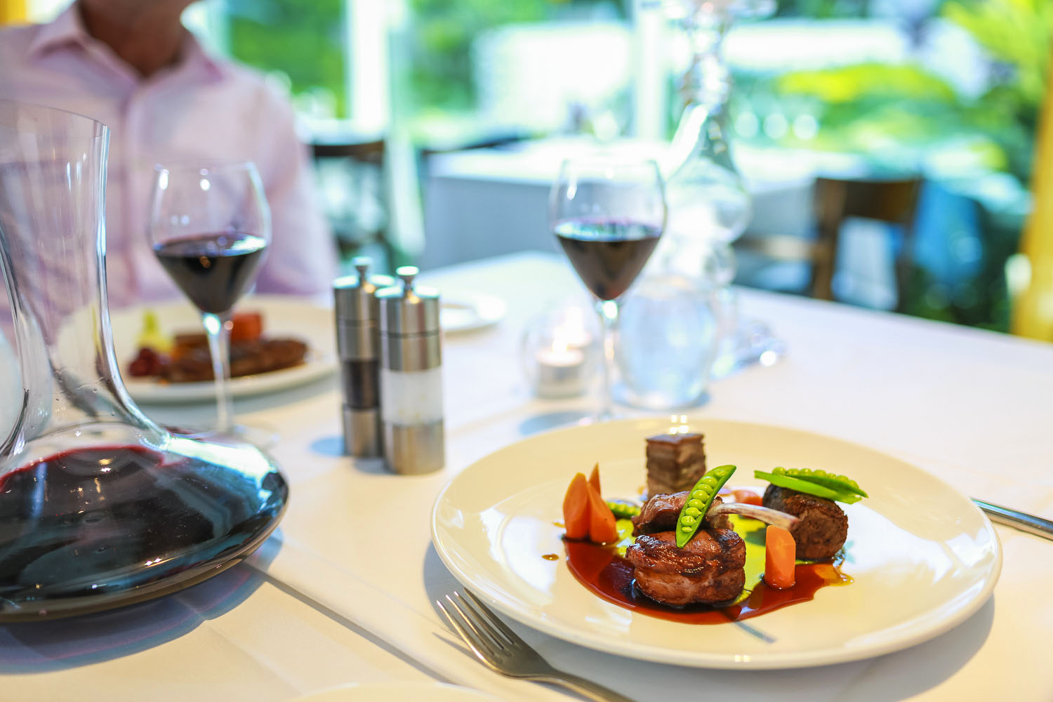 The fully air-conditioned cocktail bar and lounge area is also a popular gathering place for those drawn by its quiet sophistication and contemporary wine, beer and cocktail list.
