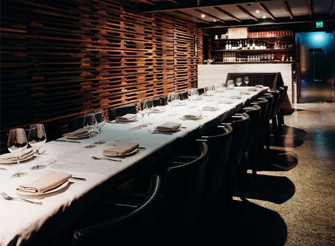 The completely private dining room is located downstairs from the main restaurant, and can be accessed from inside Leonards Bar & Bistro or directly from a discrete private entrance at the end of Spencer Lane.
