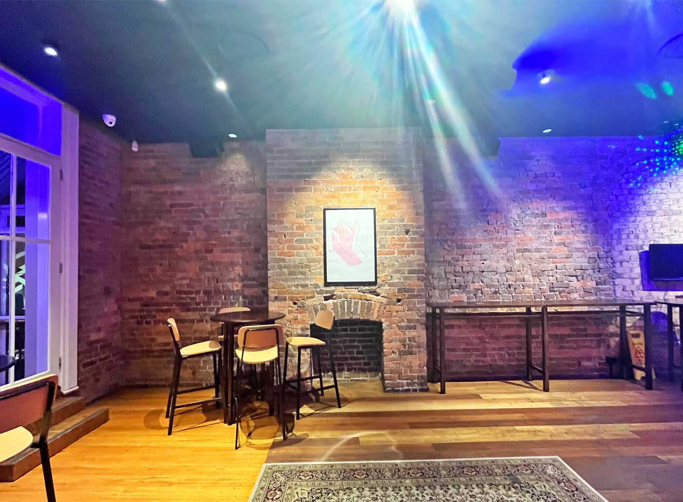 Step inside and find a seat on level one, perfect for grabbing a bite, catching up and sipping a drink under the neon light.