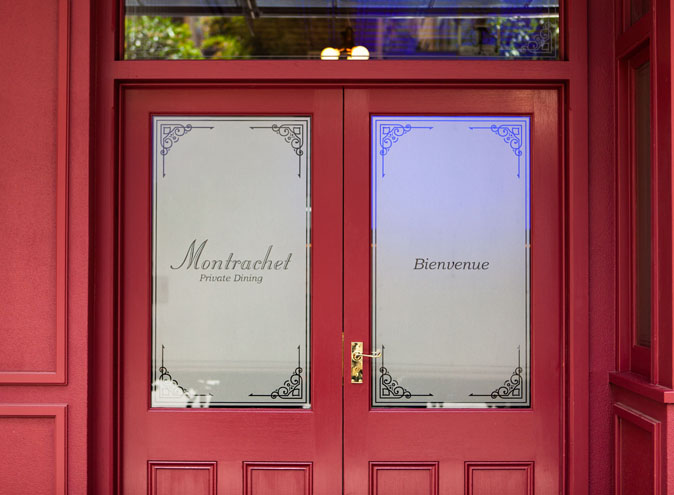 French antiques, metal pastis signs, gilt framed mirrors and 200 year old European oak floor boards create an ambience perfectly complimentary to the French cuisine Montrachet is famous for. The glassed in cellar is feature of the dining room, home to a wine list of over 340 listings.