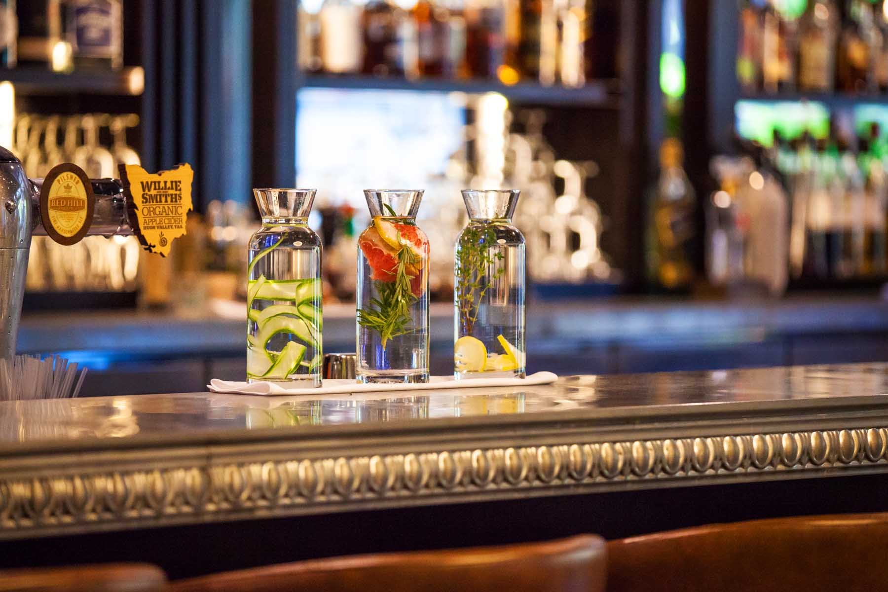The antithesis to cool and crisp Cape Cod interiors of big sister Nantucket, Nickel Kitchen & Bar will transport you back to the sultry Art Deco elegance of The Orient Express, with rich mahogany features, comfortable leather lounges and soft, mood lighting, compliments of a spectacular custom made, wine glass chandelier. It’s the kind of place you can take off your tie, put your elbows on the table and get down to the business of indulgence.