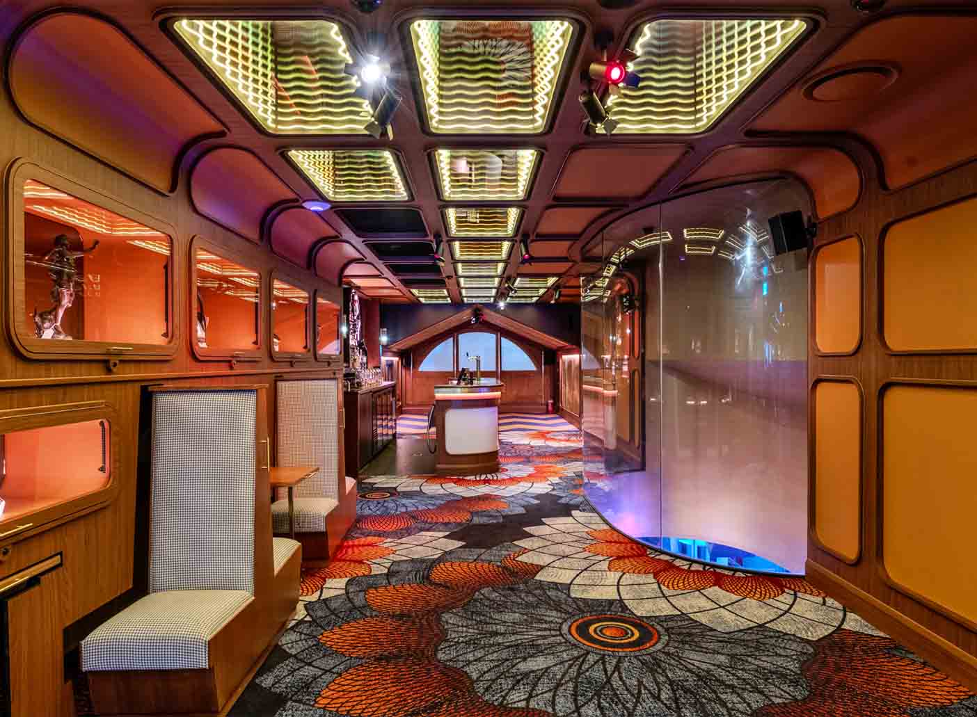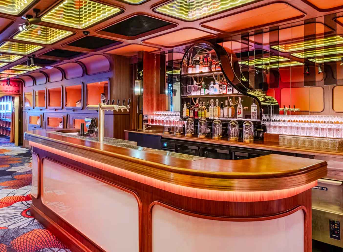 The Parlour is located on Level One, featuring infinity mirror ceilings, an array of pawn shop treasures, a private bar, a private bathroom, a DJ booth and an area for dancing!