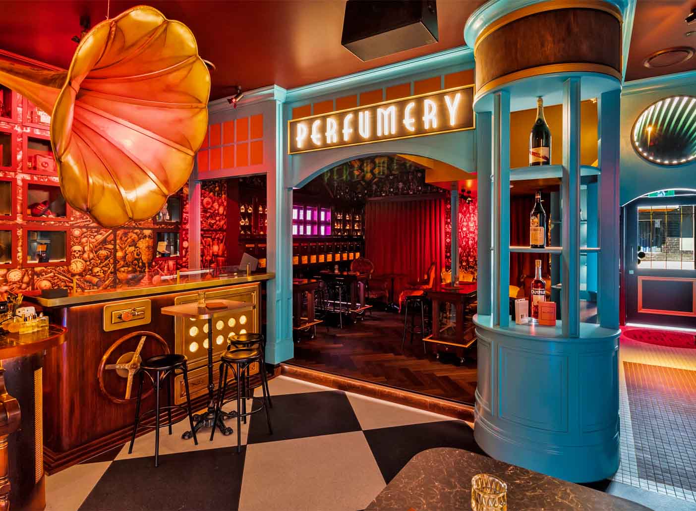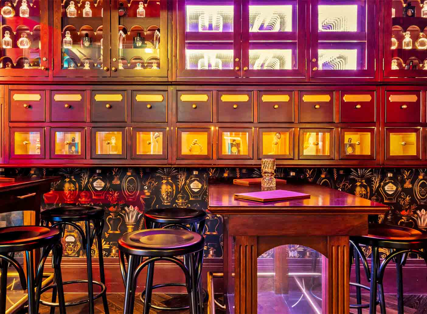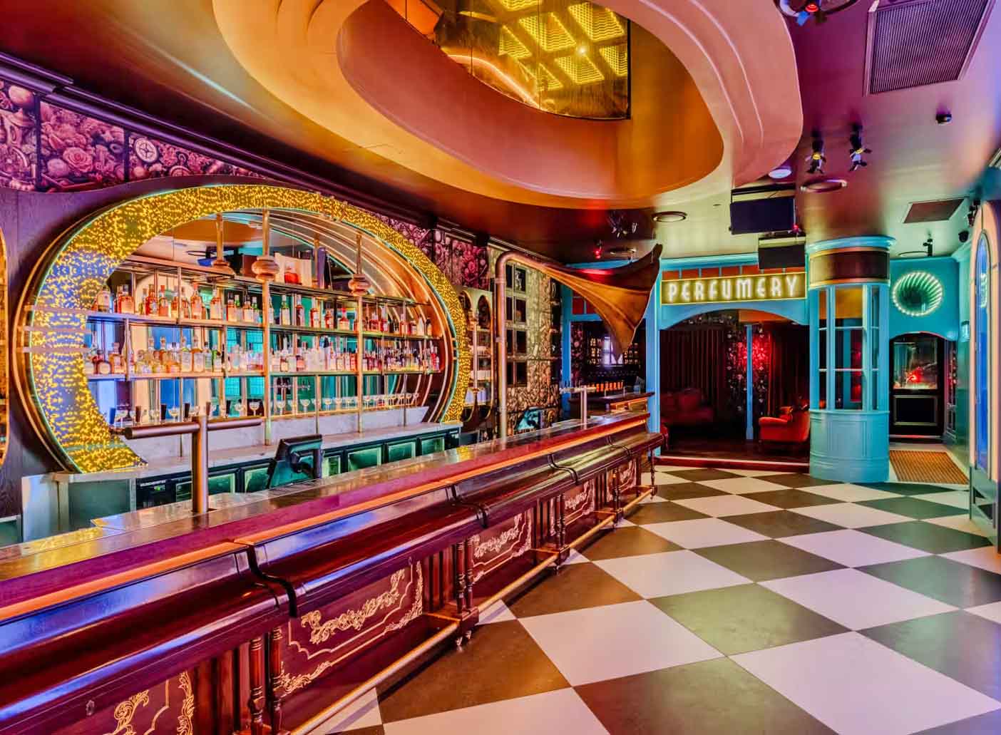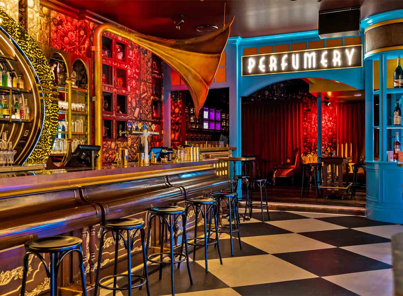 The space features a mix of lounges, tables, and chairs, with mirror ceilings and Pawn Shop display cabinets to keep your guests gazing around as they enjoy the beautiful cocktail menu. The Perfumery is a wonderful option for their late-night bottle service.