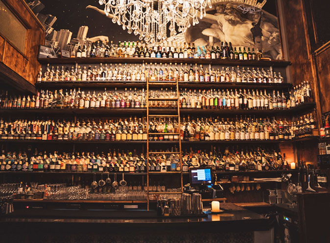 Central to the venue, their crystal chandelier hangs proudly above the bar adding warmth and glow to the backdrop of their impressive bottle selection.