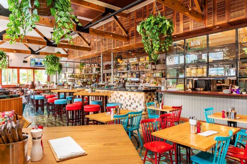 Stepping on in to the Main St Bar & Eatery is like arriving in three places all working together seamlessly to create one splendid venue where fine food and drink take centre stage, every day.  Tall ceilings and streaming sunlight set off the vibrant shades of the décor where colourful chairs, booths, benches and vintage motoring advertisements make this streetside special a high calibre, casual port of call.