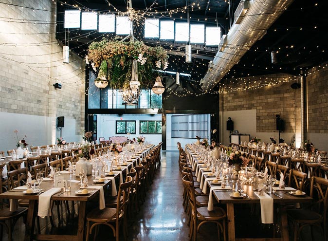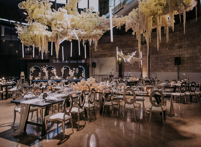 With contemporary design accents juxtaposed against an industrial-style backdrop including lofty high ceilings, pendulum lights and polished concrete floor, the space can be transformed to dazzling effect for all manner of private celebrations, corporate functions and, of course, weddings.