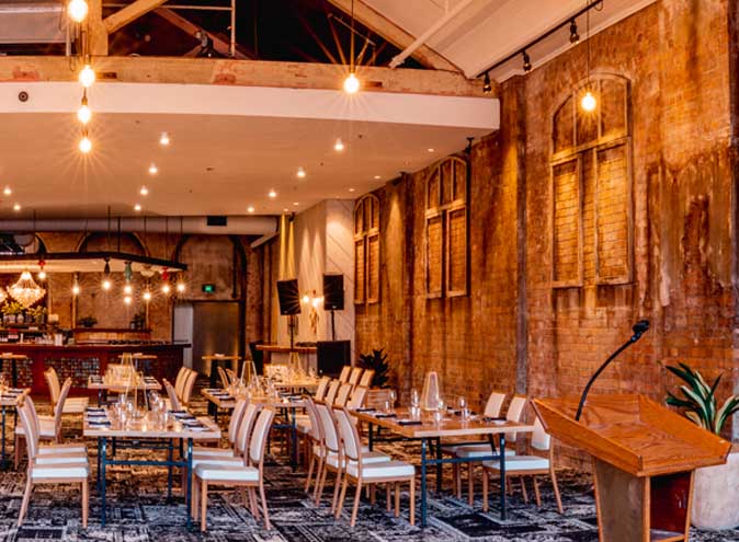 Featuring a private entry from McLachlan Street, access to The Machinery - an adjoining lounge area with floor to ceiling glass, fully serviceable island bar and internal access to The Rooftop Terrace - The Warehouse is a versatile space suitable for events of all kinds.