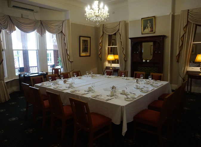 With its period fireplace and large bay windows overlooking the front verandah, the Royal Room is ideally suited for business meetings or dining functions. Its close proximity to the large front verandah offers the perfect spot for break away morning teas or pre-dinner drinks.