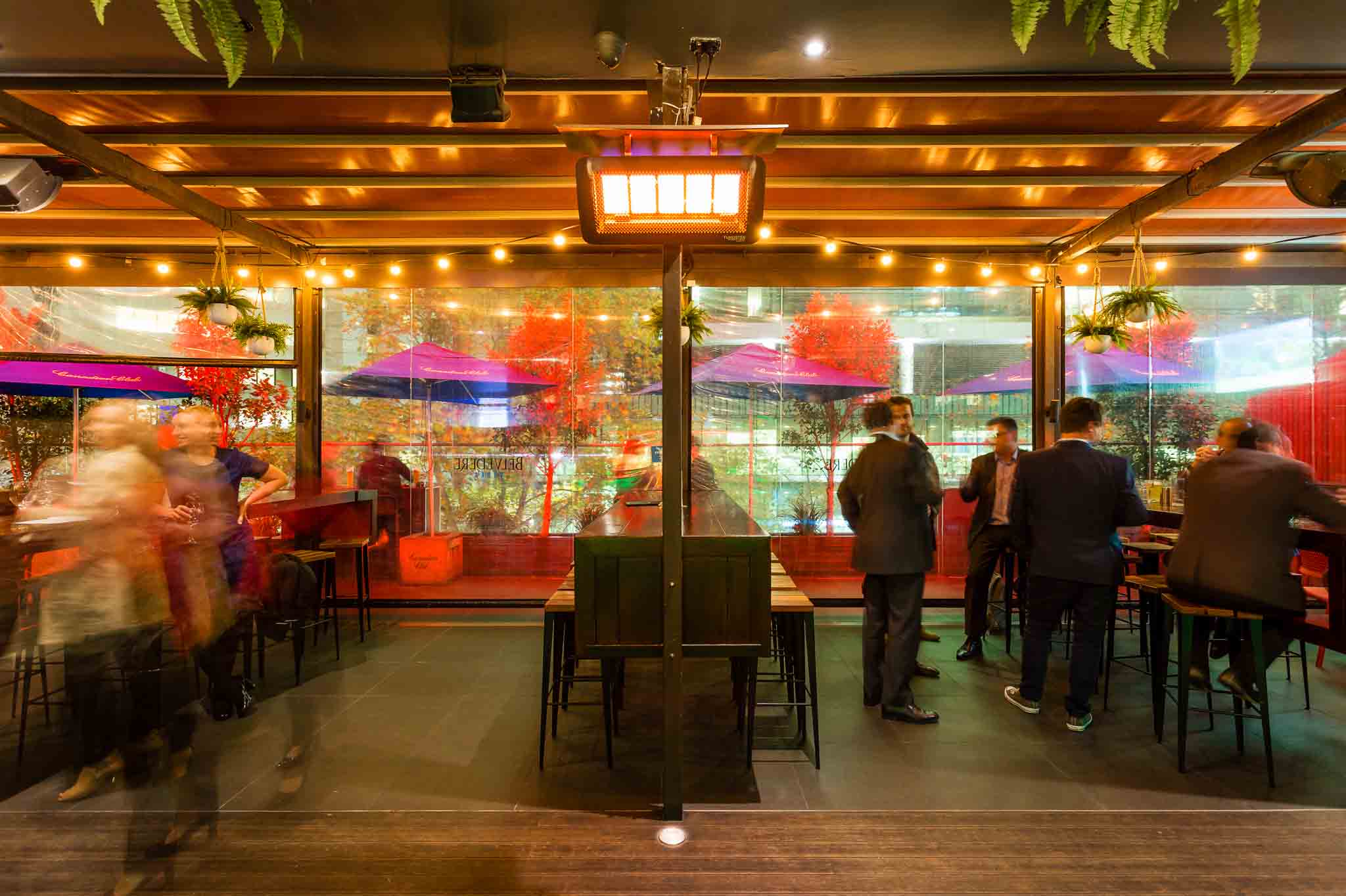 AER bar is an all weather destination. Fitted with retractable awnings and cafe blinds, allows the space to seamlessly moves from summer to winter.
