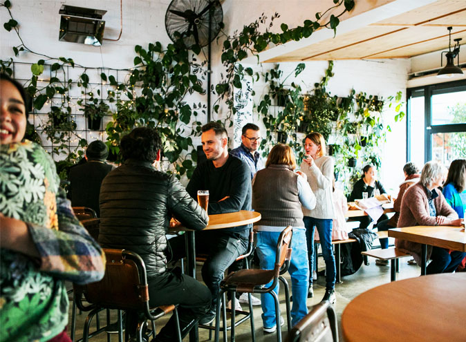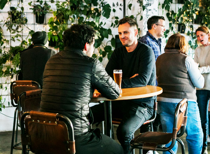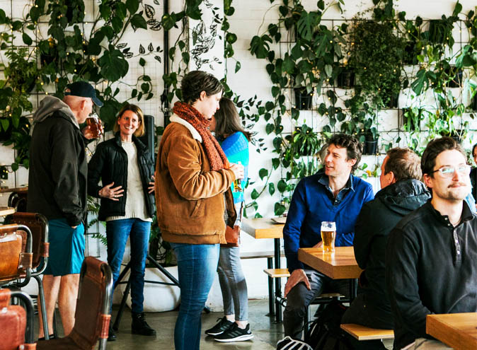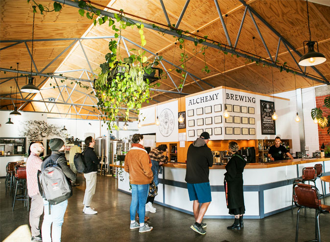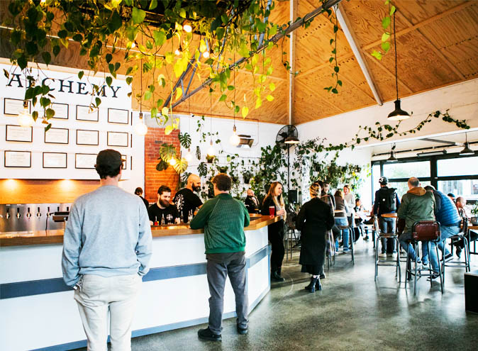Alchemy Brewing is a restaurant, bar & brewery situated in a converted warehouse featuring ample natural light and filled with plants, making the space welcoming and relaxing.