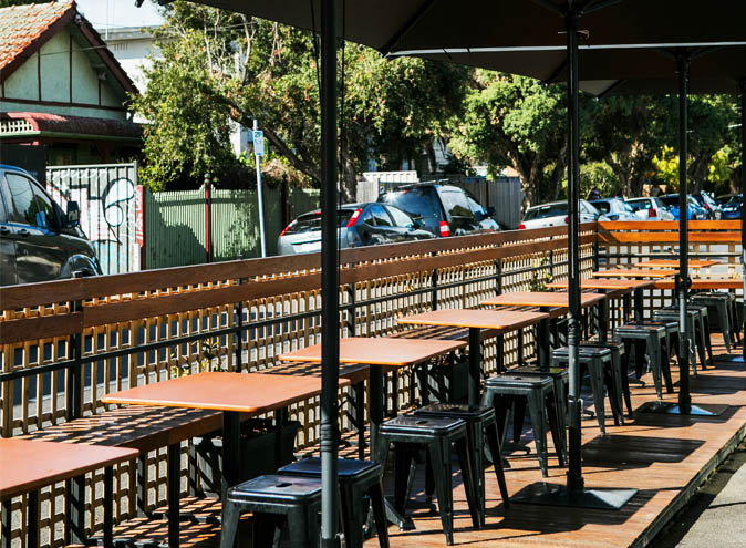 The venue has a variety of seating options including comfy booths, large tables (great for bigger groups) and a selection of smaller tables scattered throughout. They also have a small front courtyard and a spacious parklet/footpath dining area on a quiet side street.