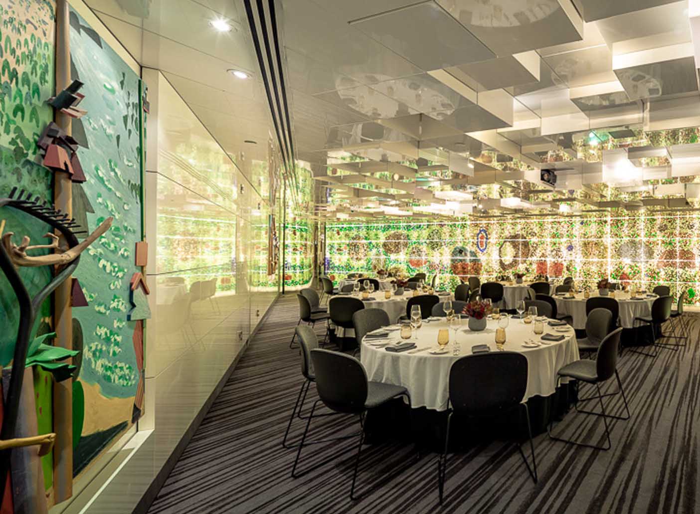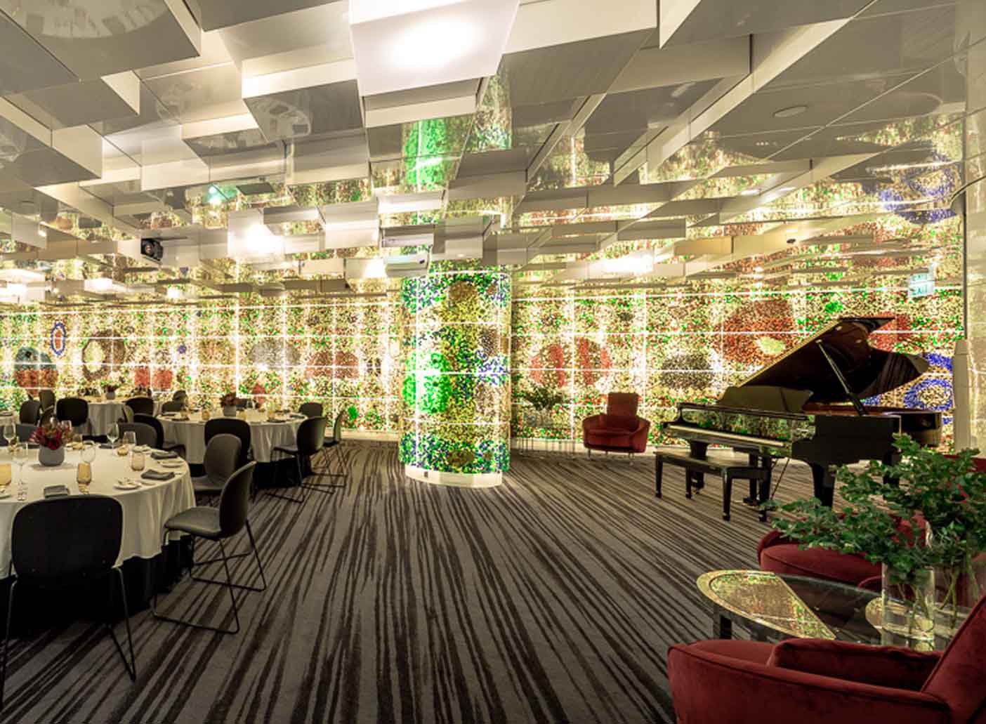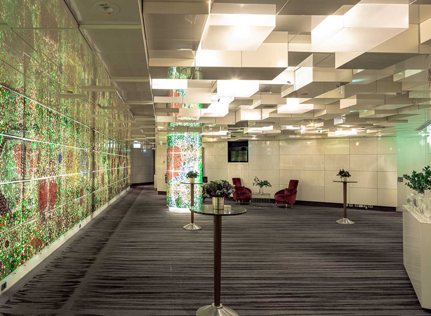 The Amcor Lounge is a contemporary event space and home to a stunning backlit wall comprising more than 464,000 marbles and memorabilia. This unique artwork creates the illusion of bubbles suspended in water, providing a kaleidoscope of colour and interest for your guests.