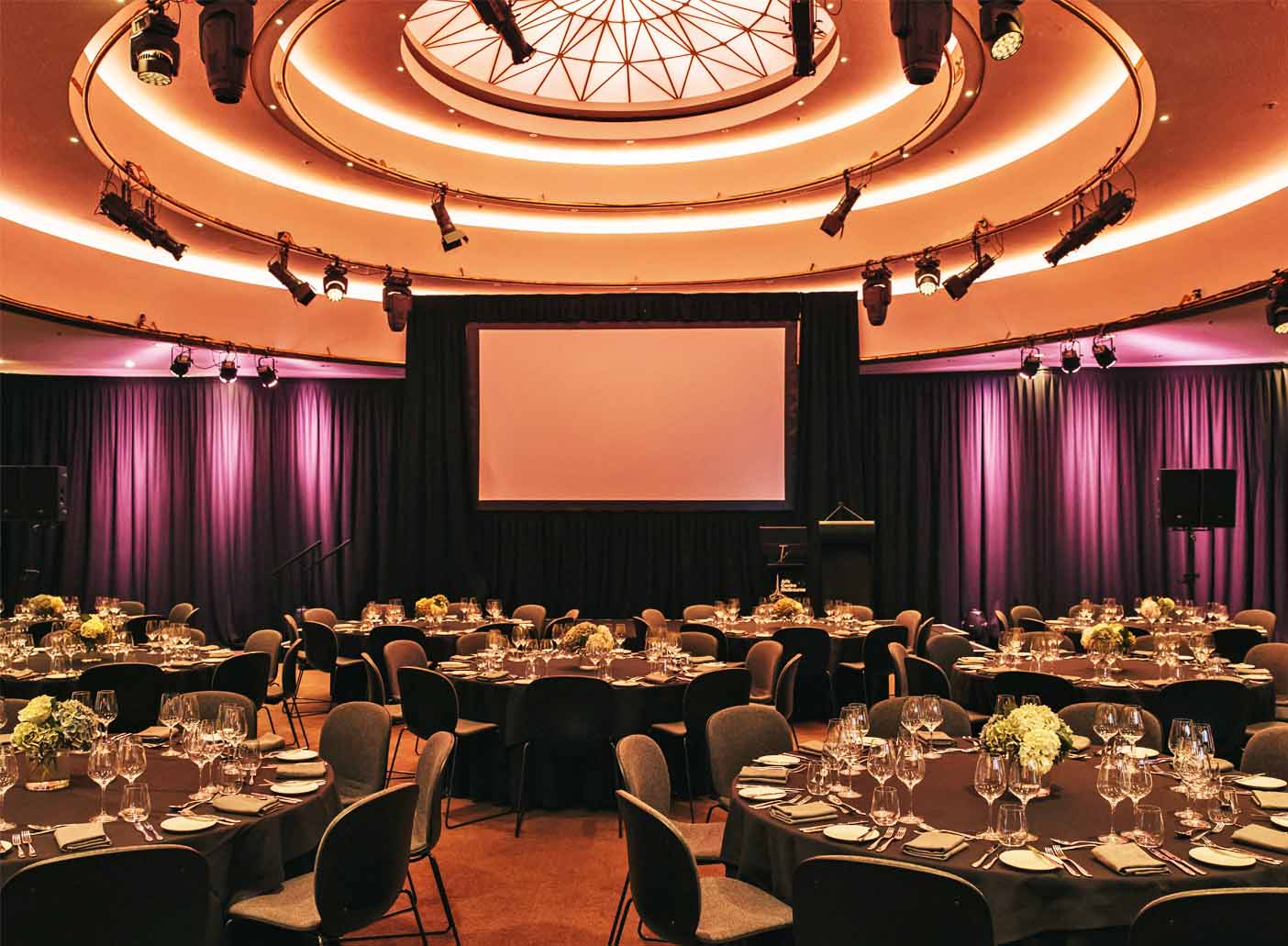 The distinctive circular shape of the Melbourne Room and its exquisite, hand-printed Florence Broadhurst wallpaper provide the inspiration and theming for your next event.