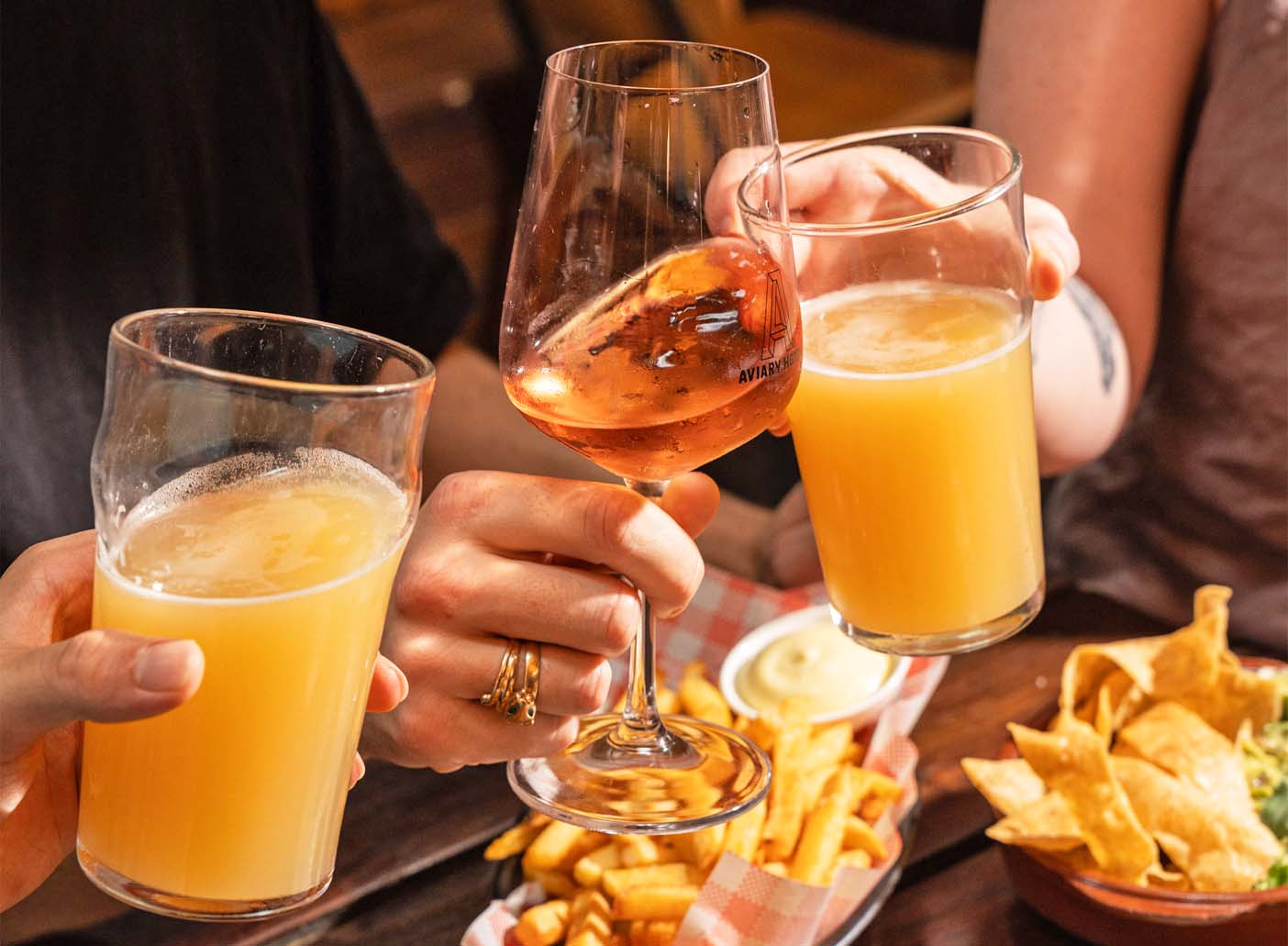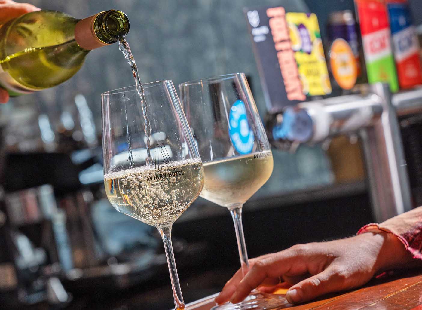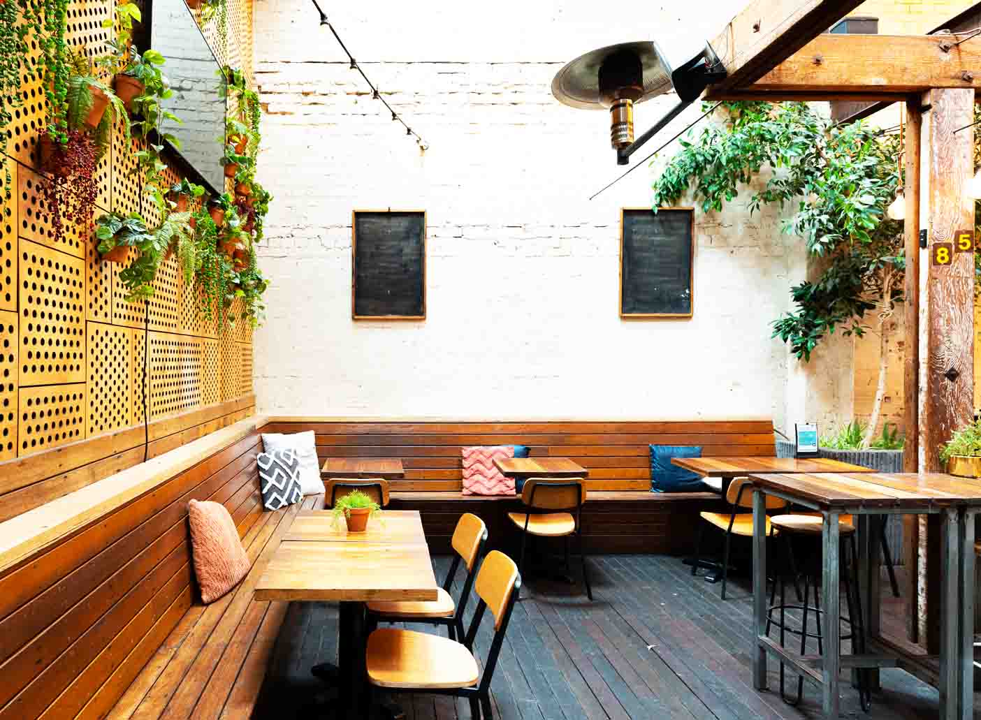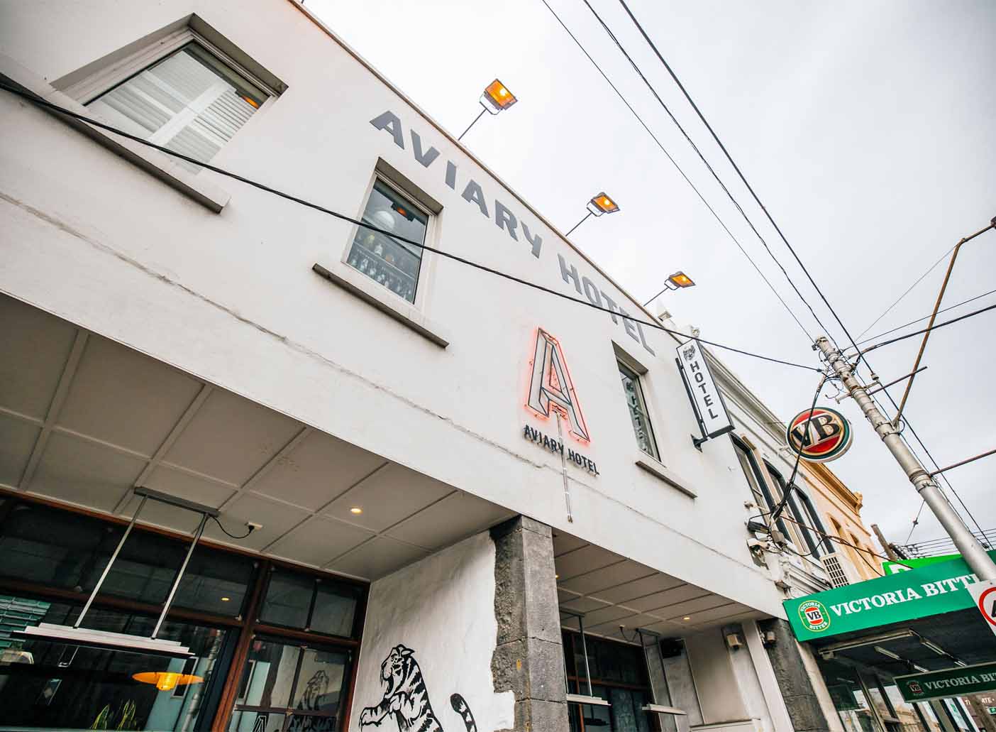 Located at the back of Aviary Hotel, discover a light-filled, cosy beer garden.