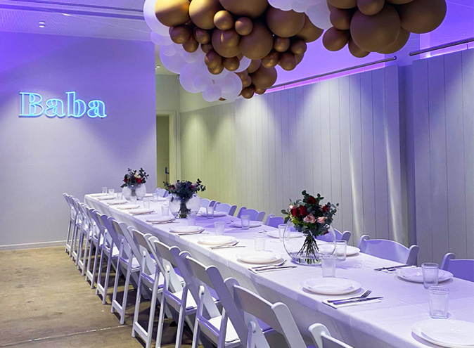 With both indoor and outdoor spaces, Baba is a newly designed venue perfect for intimate parties.