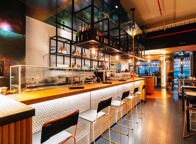 Their internal semi-private dining space can cater up to 42 guests seated, or when combined with the front and bar terrace, up to 200 guests standing. Both terrace spaces can be utilised separately accommodating up to 80 guests on the front terrace and up to 120 guests on the bar terrace. They also have the back bar space perfect for smaller cocktail functions of up to 40 guests with your own bar.