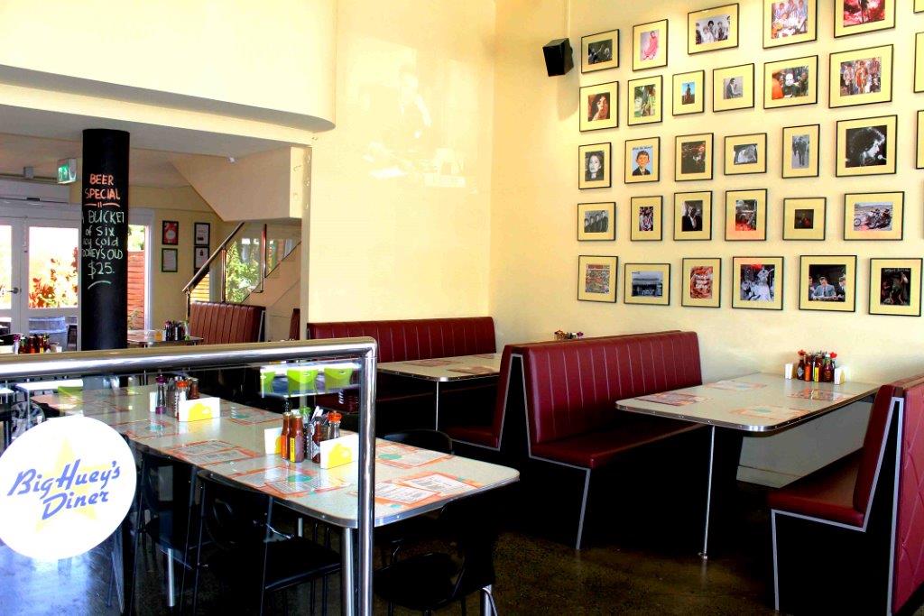 Big Huey’s Diner is available for private parties and events of all types for up to 65 people (sit down) or 100 (standing) and even has a private function room upstairs! Situated directly opposite the South Melbourne Market, our venue has plenty of parking available (except daytime at weekends) and we are situated next door to major public transport. Owned and operated by celebrity chef, Iain ‘Huey’ Hewitson, a number of very affordable set price menus are available to choose from. But Huey can also tailor a menu to suit your tastes. The food itself is an eclectic blend from the States, Asia, Australia and even NZ, and features everything from Wicked Burgers and Po’Boys to Roll Your Own Burritos, Sexy Salads, Diner Classics and much more. Drinks wise, our craft beer, spirit and wine list is unequalled in a casual venue (not forgetting our frozen Raspberry Margarita and Peach & Mango Bellini Slushies!). Add to this music from the 50’s and 60’s and a lighthearted feel, and this is the venue to hold any party, event, or function where the guests just want to have a bit of fun! Big Huey’s Diner is a great venue to host your next function, be it a birthday party, cocktail event, or private dining date!