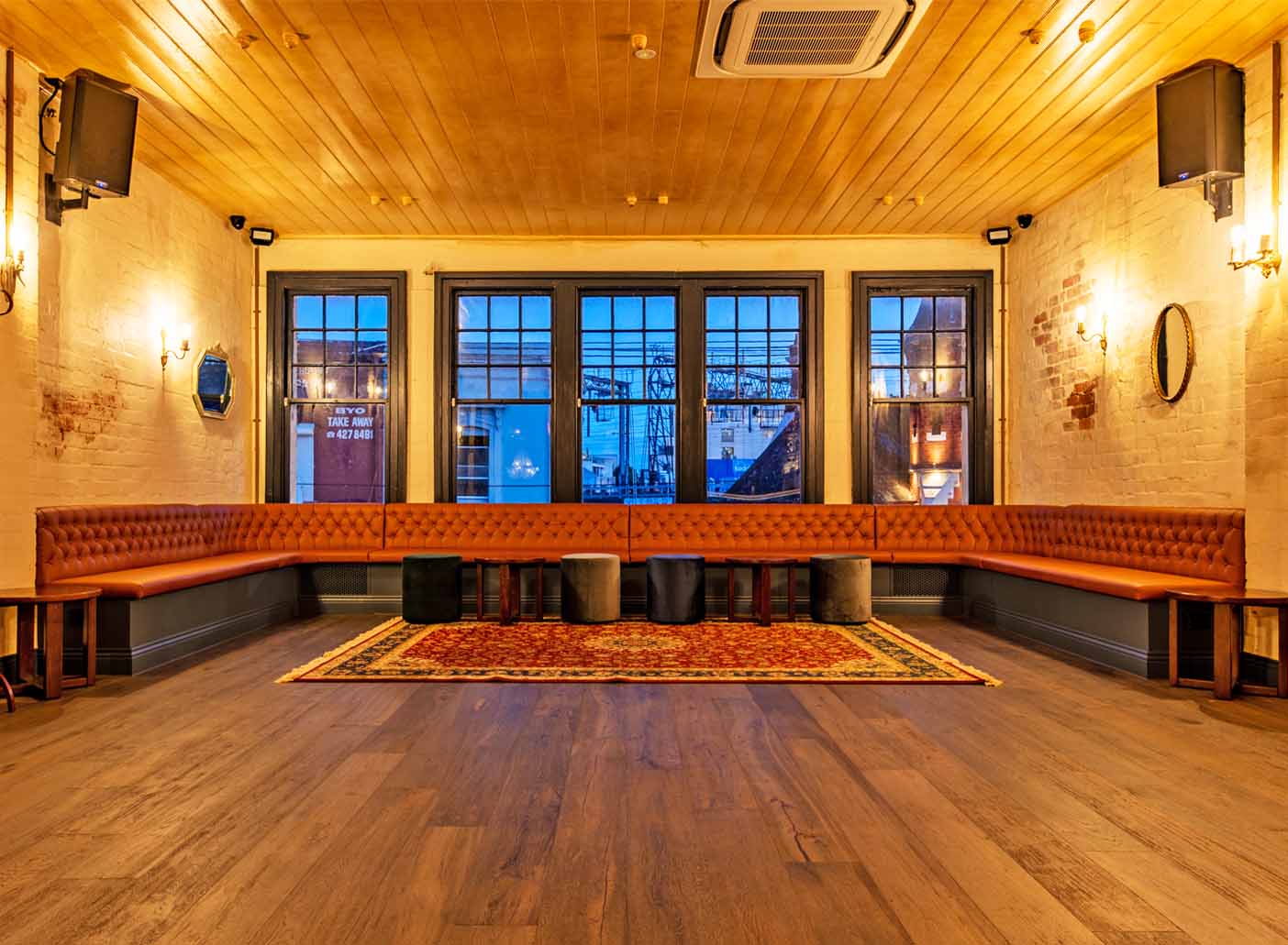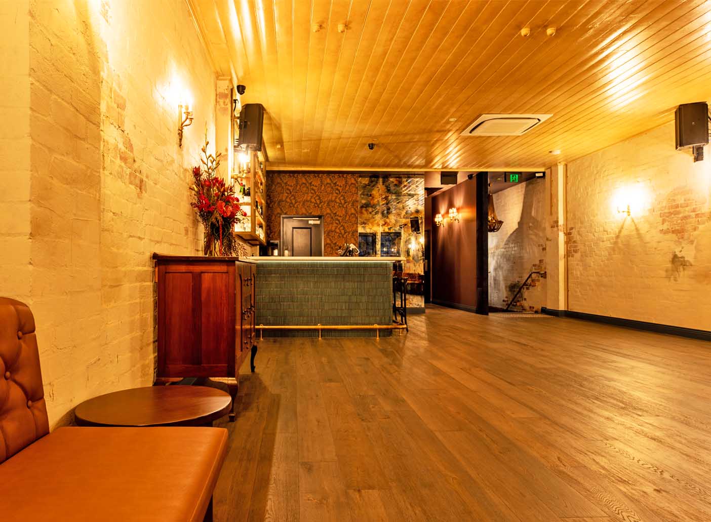 Situated upstairs above the main bar, The Blacksmith Bar's unique private function room is dressed with quirky antique, prohibition style decor.