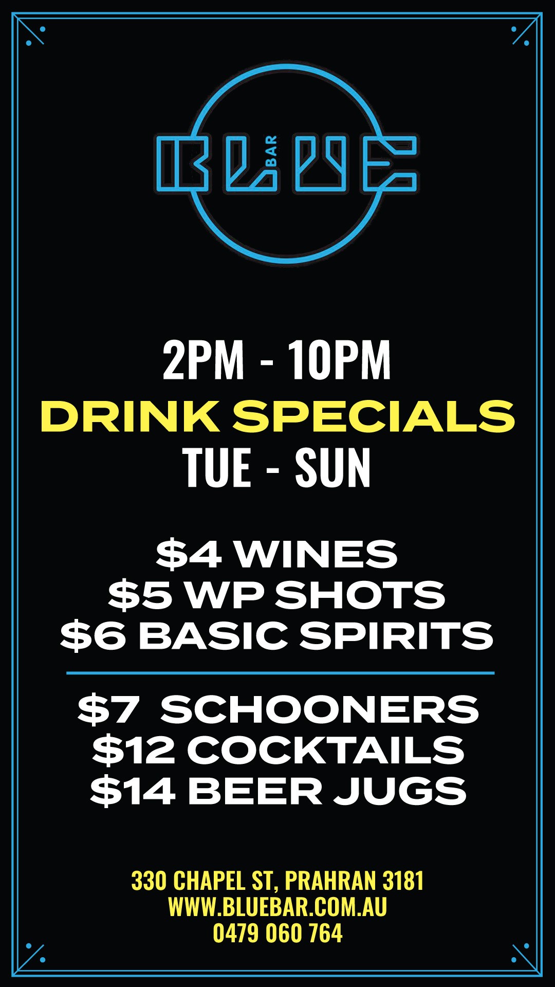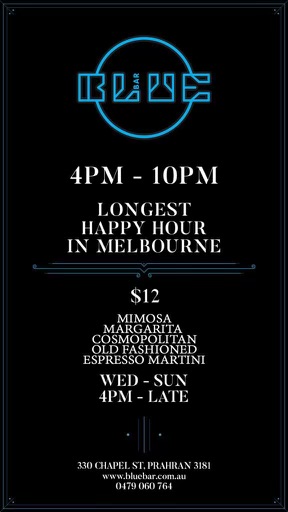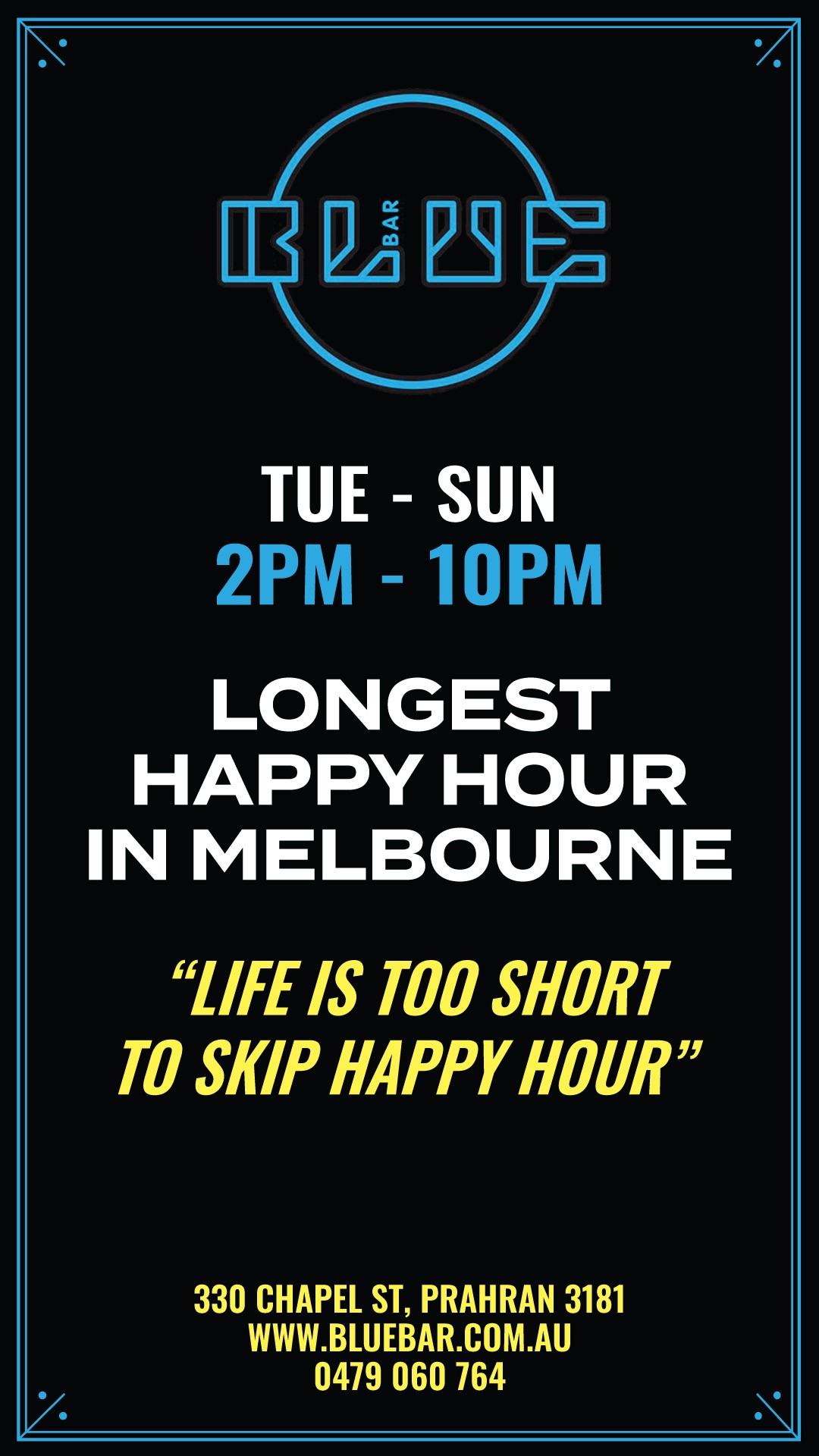 Available from 2pm to 10pm, Tuesday to Sunday. The longest happy hour in Melbourne!