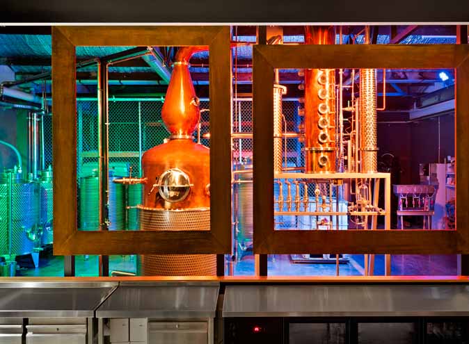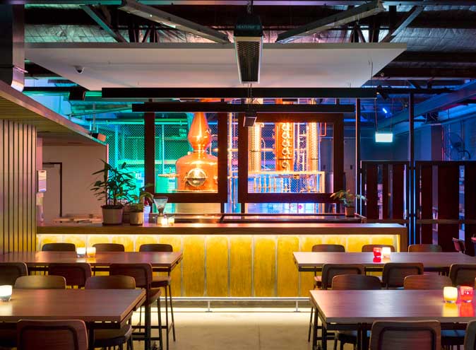An ideally located venue, just 3kms from Melbourne's city centre, embraces its heritage with a modern warehouse style fit out. The impressive hybrid copper pot still and stainless-steel tanks are clearly visible and beautifully framed to resemble great art works hanging behind a long expansive solid wood bar.