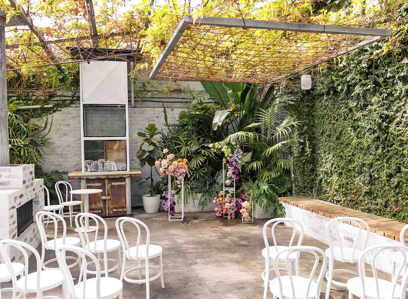 Downstairs, be welcomed into 'The Gallery' as an homage to this restored button factory and the ideal pre-event or breakaway space. Slowly delight your way down a grazing table as you mingle and admire the local art. Entering further, discover 'The Garden' heart - an indoor green oasis, breathtaking in its freshness. A lush backdrop for any wedding ceremony or cocktail party. As the evening continues, make your way upstairs to 'The Loft' as the pinnacle, light-filled event space seating up to 191 guests with a dance floor - its the ultimate party destination. A soft canvas to transform any way you wish.