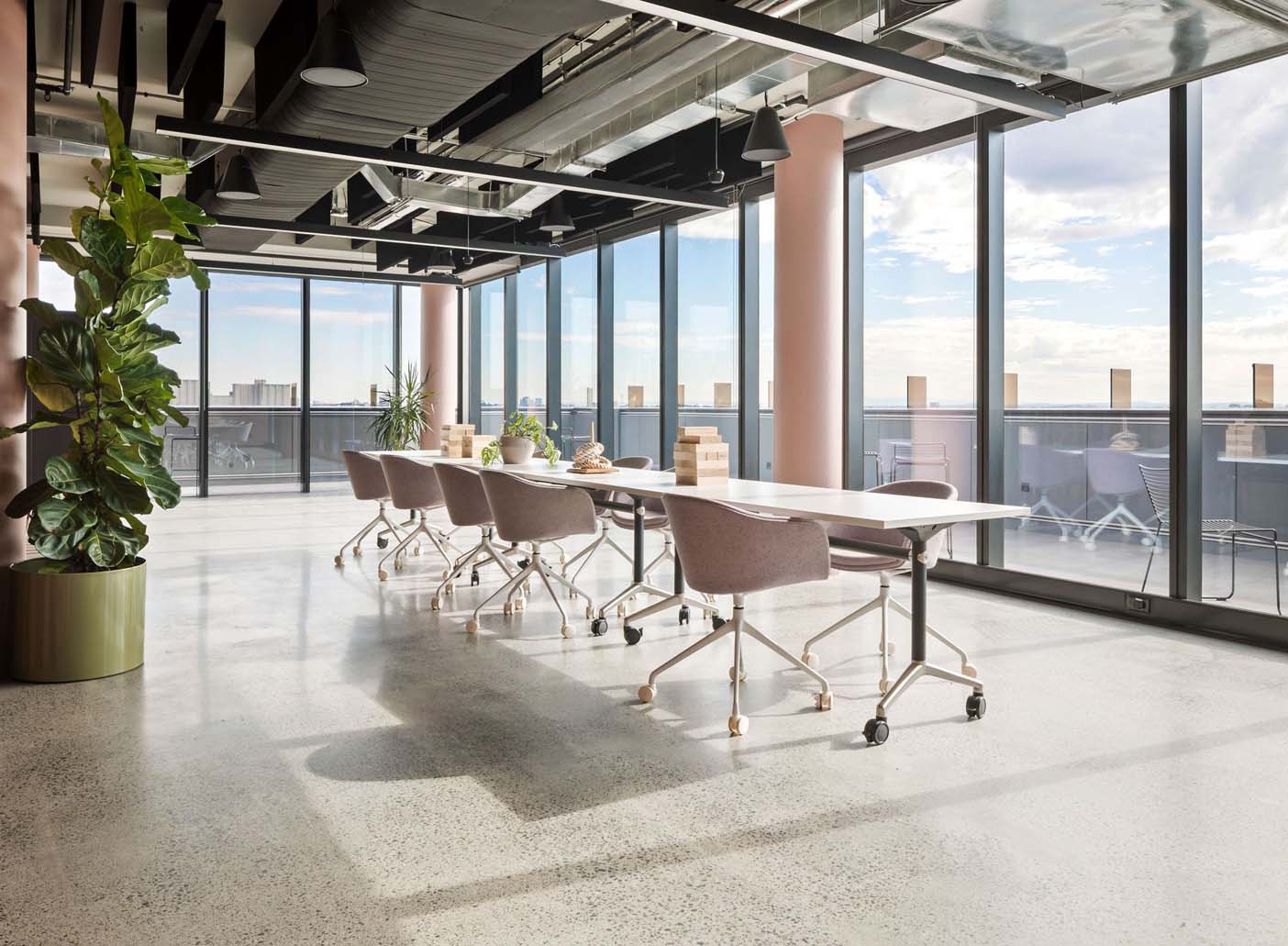 With floor-to-ceiling windows, the space boasts stunning panoramic views of Melbourne's CBD skyline, offering a beautiful backdrop by day and a sparkling cityscape by night.