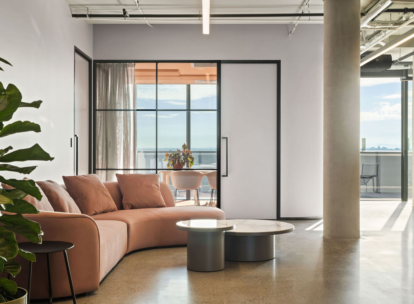 The space also opens to an outdoor balcony, perfect for enjoying the city views, sunset drinks, and casual networking.