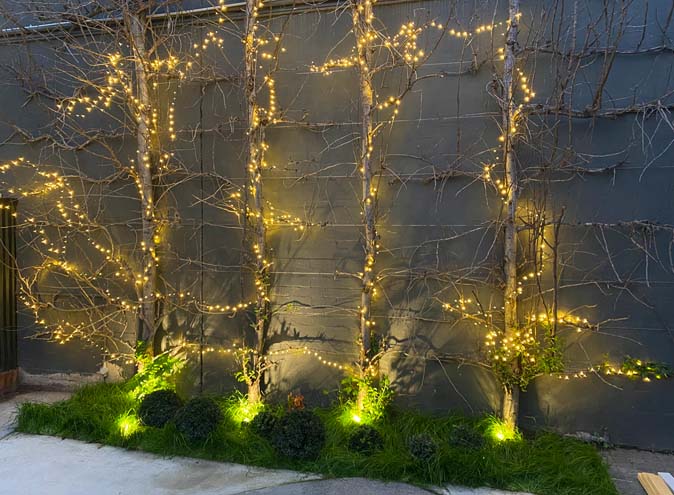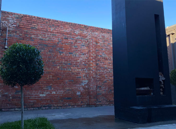 A cathedral style high-end dining / events space enclosed by 5m high brick facade and steel gates for a completely private experience both indoor and outdoor. The space comes with a free standing fire place, lit up garden beds and seating.