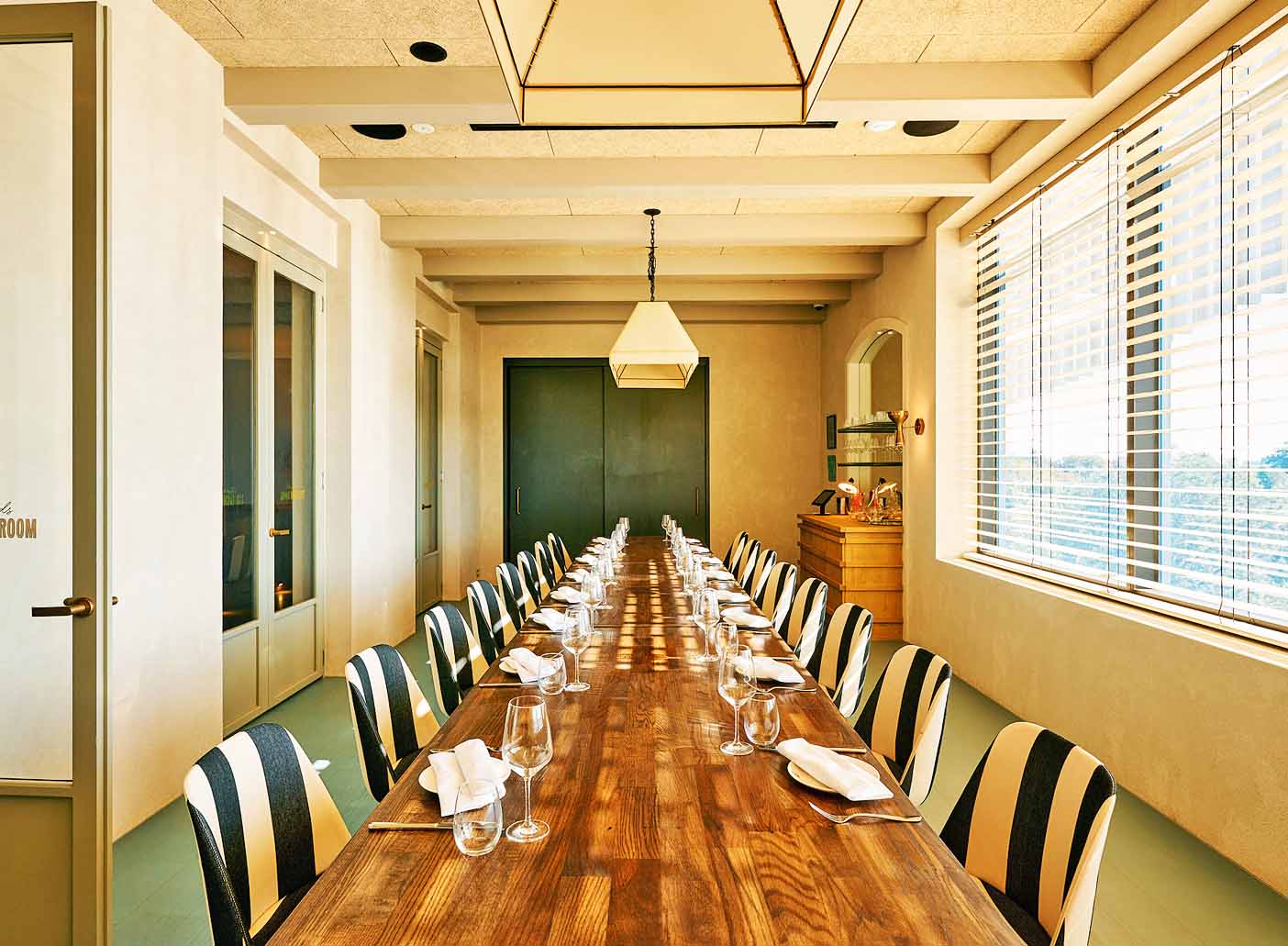 Dining Room The Terrace private Dining Room features a custom table seating up to 40 guests, double height windows capturing our tree top views towards Melbournes East. It is situated on a stunning mezzanine level above the Cityfields Public Bar. If you are looking for a cocktail space the Terrace Private Dining room can cater for 80 guests standing across the stunning terrazzo marble floors.