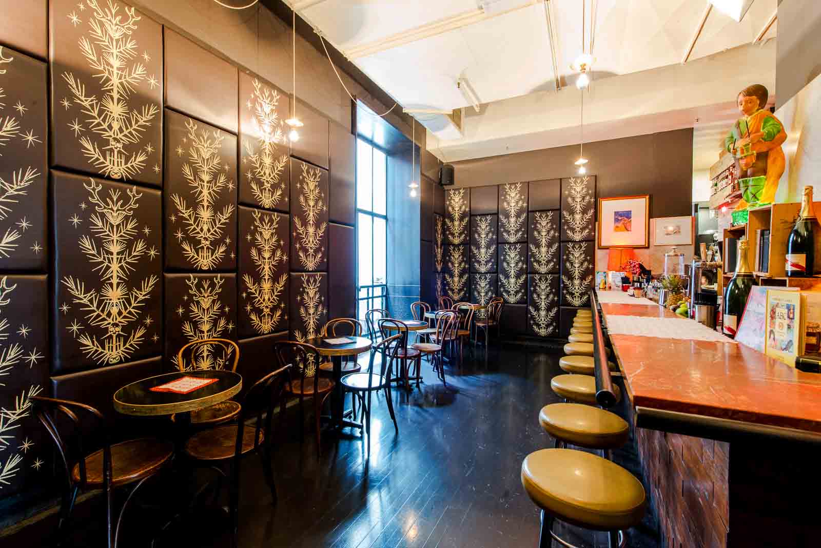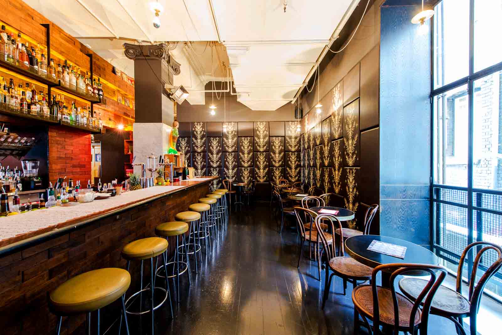 For a more intimate setting, cocktails of all varieties are served in a tucked-away corner, sheltered from the open bar and restaurant space.