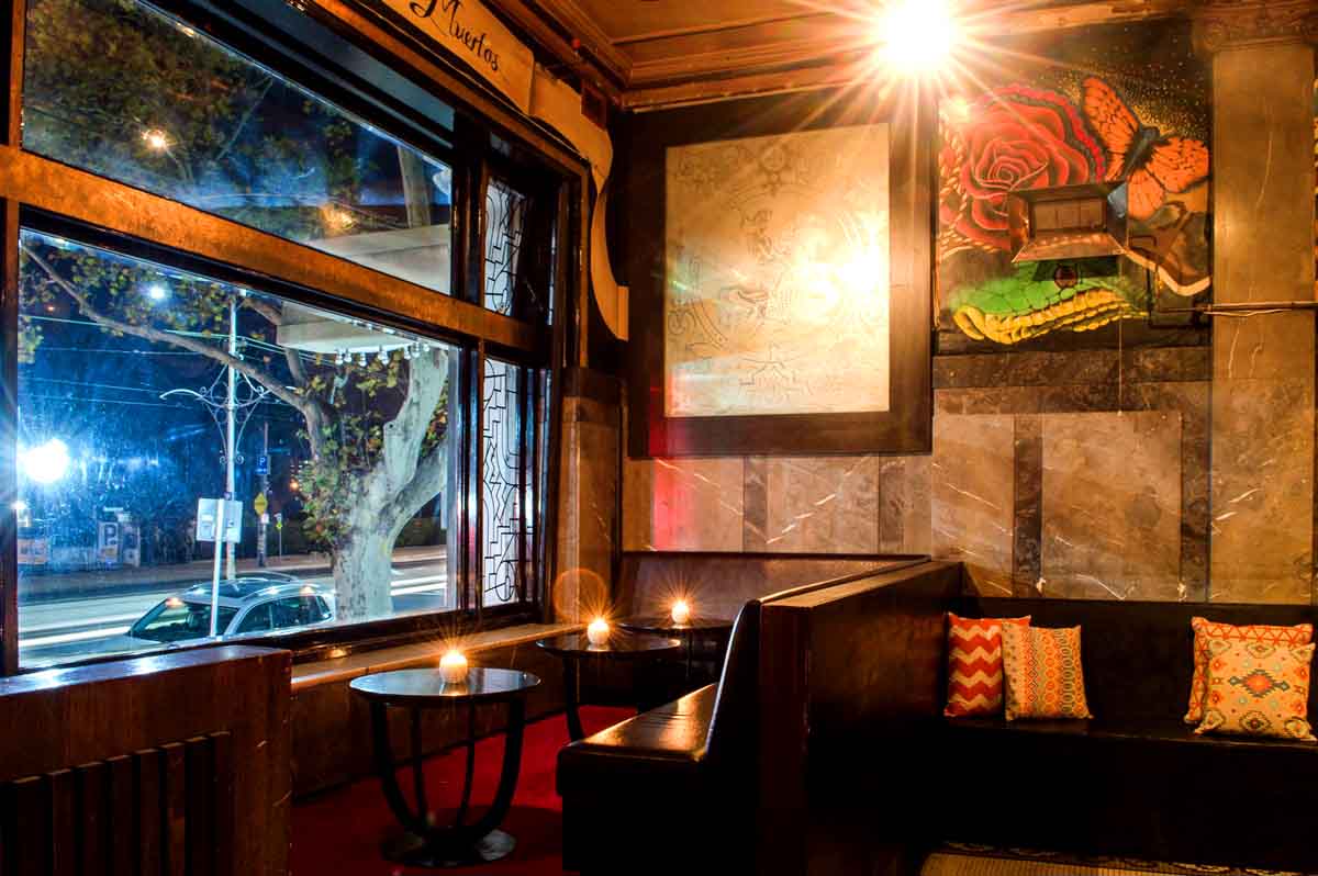 Day of the Dead is a Spanish cocktail and tapas bar located on Fitzroy Street in St. Kilda. They are known for their expansive variety and quality of cocktails and unparalleled customer service. Here at Day of the Dead Cocktail Tapas, our mission is to commemorate what Cocktail bars and restaurants once were by reinstating a long forgotten standard. The days when being behind the bar wasn’t a job, it was a life-choice. The days when all ailments could be cured with a combination of Tequila, Chartreuse and maybe even a little Jagermeister. When pouring a perfect drink wasn’t for a tip, but merely for the love of knowing that your services and presentation created an experience, a memory and maybe if you’re lucky, a little bit of happiness. Within our walls, the antiquity of hospitality lives on. Can you book a table for dinner? Give us a call and we will let you know if we have some free.Birthday Drinks? We do those too.Live music? Yeah we have it, Thursdays and Sundays.MMA sparring sessions? We don’t really do those, but maybe a drink after?