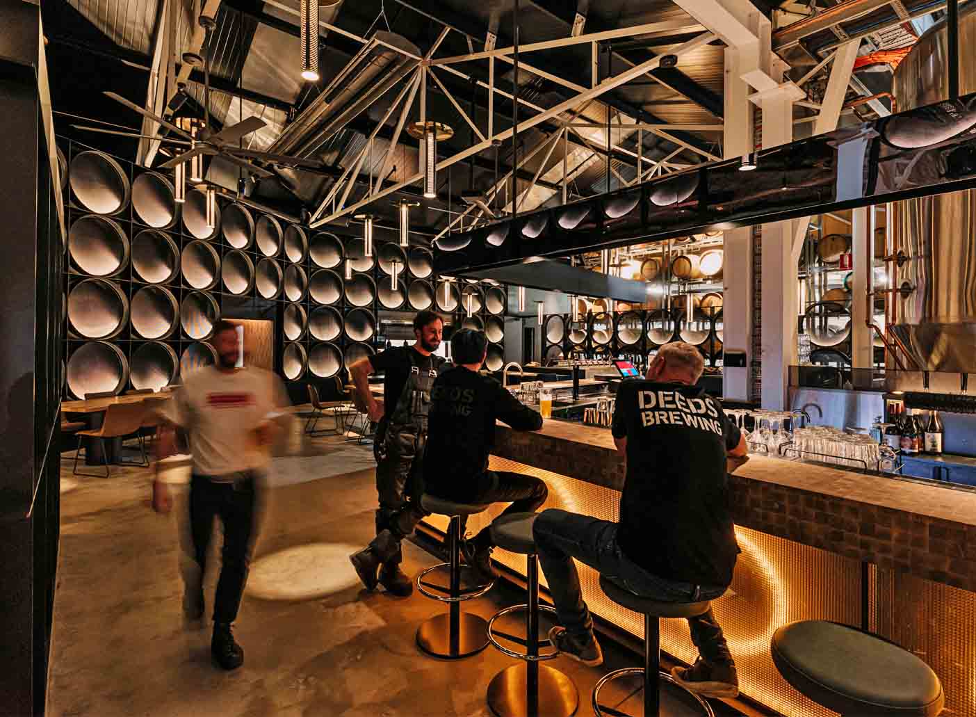 Welcome to Deeds Taproom, where the heart of our brewery beats just meters away from your table. Deeds' bar is a lively celebration of craft, showcasing an extensive range of house-brewed beers that are meticulously crafted on-site.