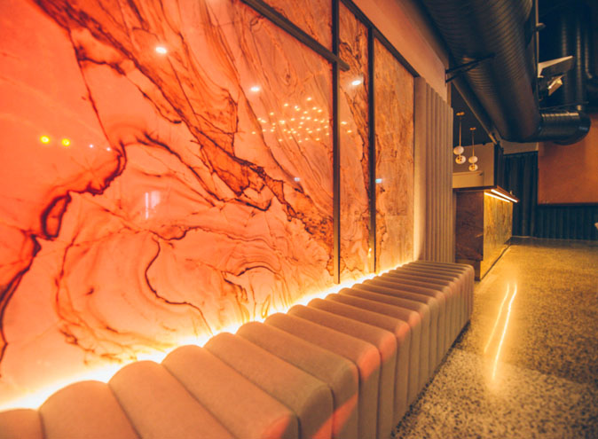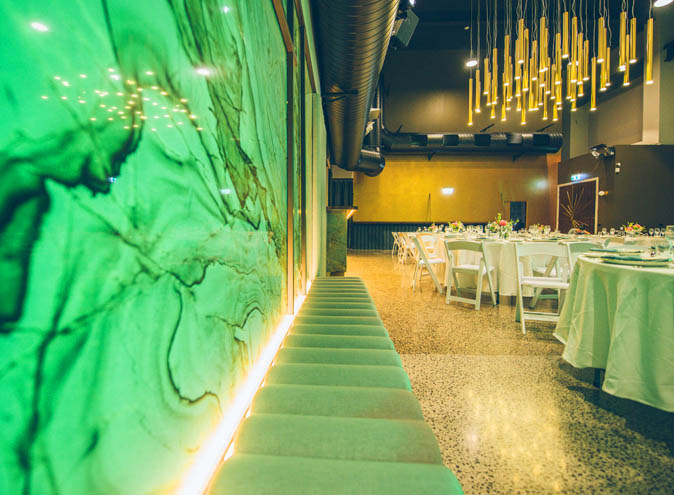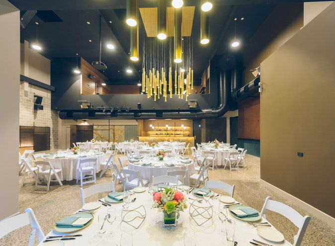 Embracing the modern Gatsby elegant design with industrial features, this lux and inviting venue offers grand marble, tall ceilings, exposed beams, polished concrete falls, pendant lighting fixtures and amazing banquet seating. This venue is guaranteed to impress your guests.